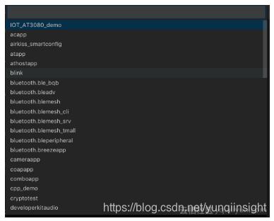 此时编辑器顶部的命令输入框会弹出选择要编译的目标,此时选择blink