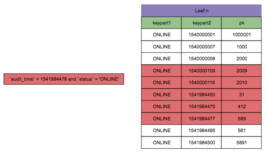 改进之处因为在索引里面有status的值,所以在筛选满足status='ONLINE'行的时候,就不用回表查询了。在回表的时候只有5行数据的查询了,在iops上会大大减少。