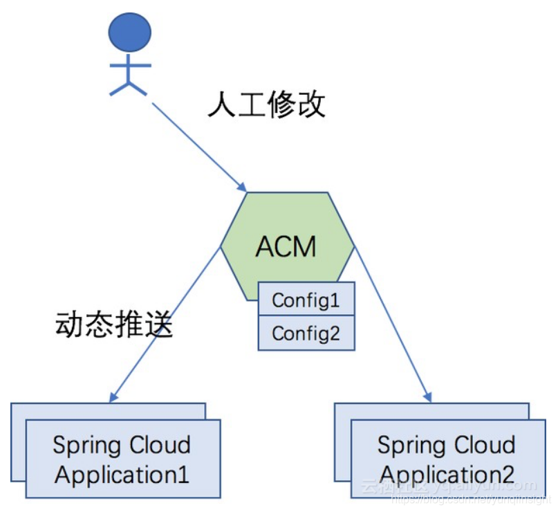 ACM全面兼容Spring框架接口,包括Spring Framework、Spring Boot和Spring Cloud,其为 Spring Cloud编写的应用配置管理,和Spring Cloud Config对比,由于极简的架构,带来了众多的好处: