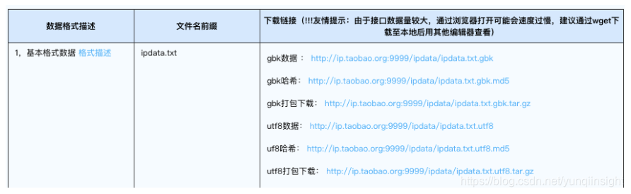 ① IP地址库下载,http://ip.taobao.org:9999/ipdata_download.html 下载需要的格式数据。本文以[基本数据格式]为例。