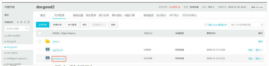 将applog.txt文件上传到OSS,本文中OSS Bucket位于华东2区。