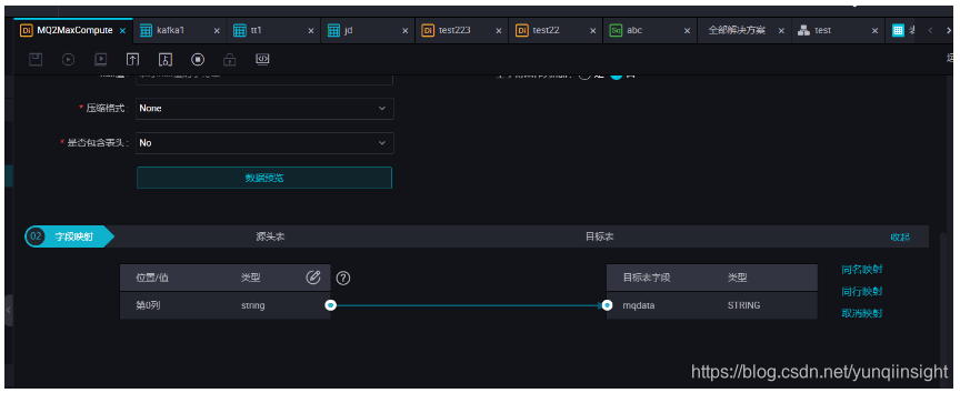 表参数可以通过图形化界面完成。本例中mqdata表仅有一列,类型为string,列名为MQ data。