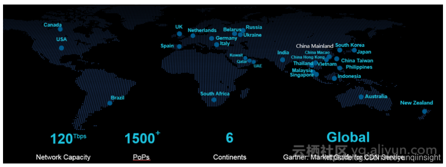 阿里云CDN从2014年开始正式对外提供服务,拥有全球1500+节点,300+海外节点,覆盖北欧、北美、东亚、东南亚等地70多个国家和地区,业务涵盖视频、金融、电商等多个领域,全球带宽总量超过120Tbps,有效满足国内用户出海加速和海外用户加速的需求。