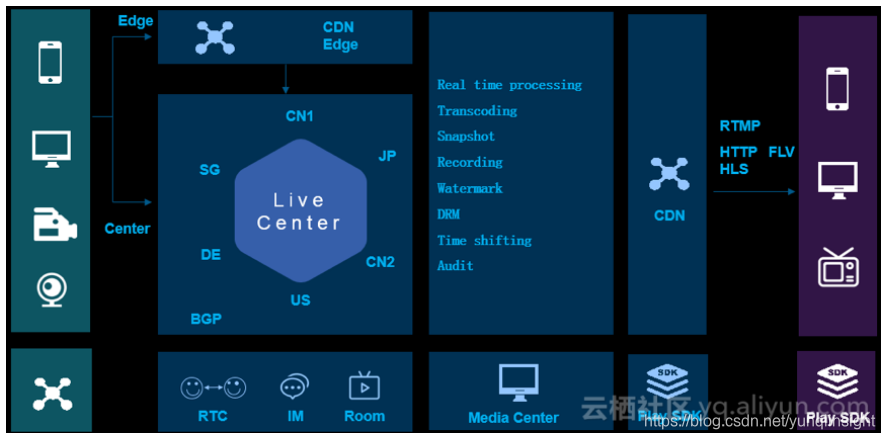 同时,阿里云遍布全球的基础设施与多年沉淀的直播技术深度结合形成直播解决方案,双11晚会推流到就近L1边缘节点,经过L2节点上行链路加速,到达新加坡直播中心进行转码、切片、录制等处理。播放端从就近的L1边缘节点获取视频流,如果没有视频流就从L2节点拉流,L2没有这路流就从中心获取。CDN可以监控全链路的网络抖动情况,通过智能化、自动化调度,来保证泰国、马来西亚当地的低延时、稳定、流畅的直播体验。