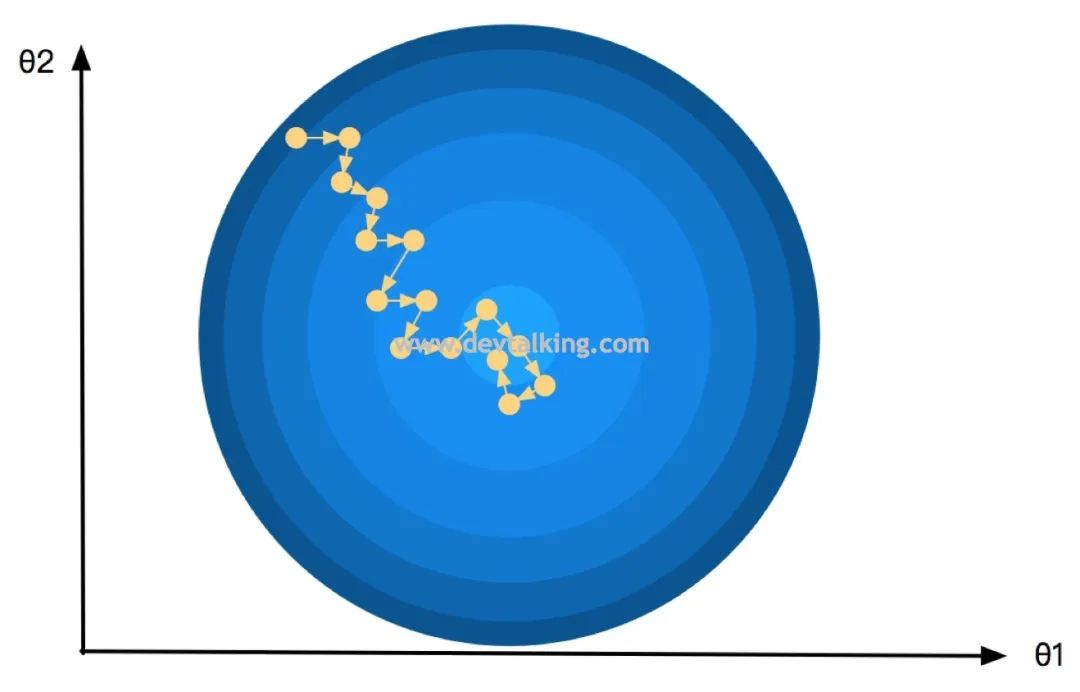 那么我们再来看看随机梯度下降法的 查找轨迹: