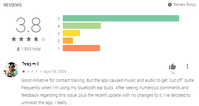 图9:用户反馈由新加坡官方所推出的TraceTogether APP会影响收听音乐的体验 [11]