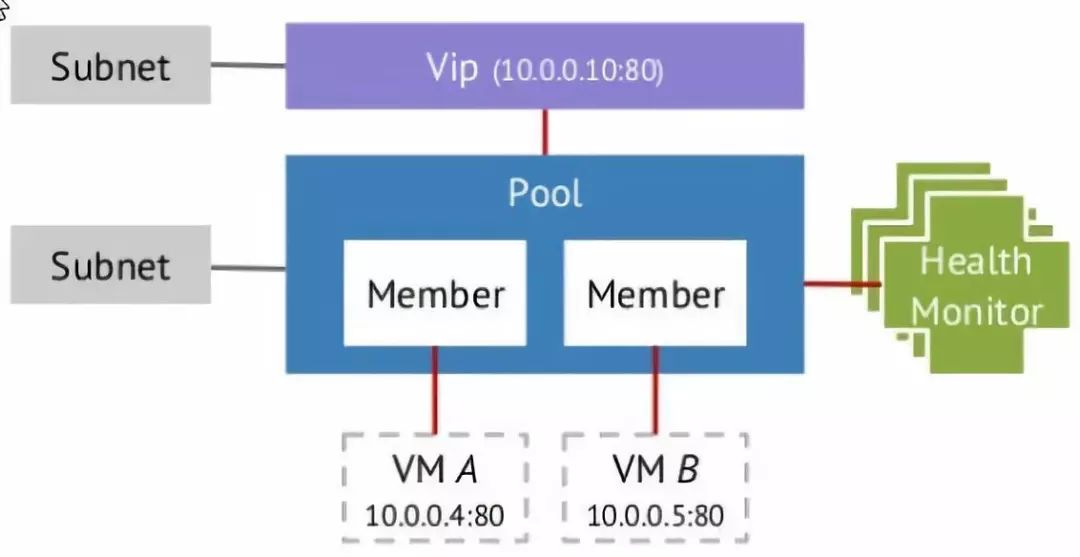 Member:类比传统负载均衡体系的 Real Server,实际运行用户业务的云主机,被包含在一个 Pool 内,具有权重属性。