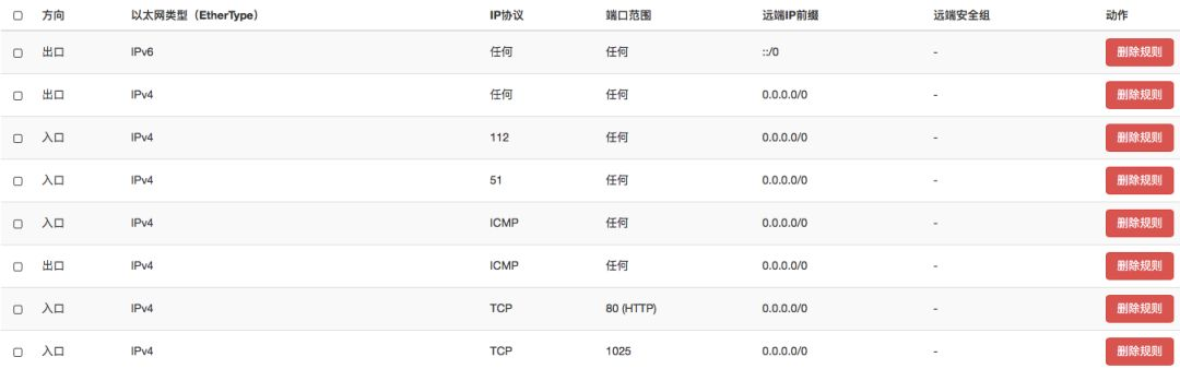 同时还会自动创建 VIP(Amphora 实例)的安全组 lb-,因为上面设定的 Listener 监听 HTTP Port: 80,所以会自动添加 80(HTTP) 规则。但如果想 Ping VIP 的话,还需要手动添加 ICMP 规则了。