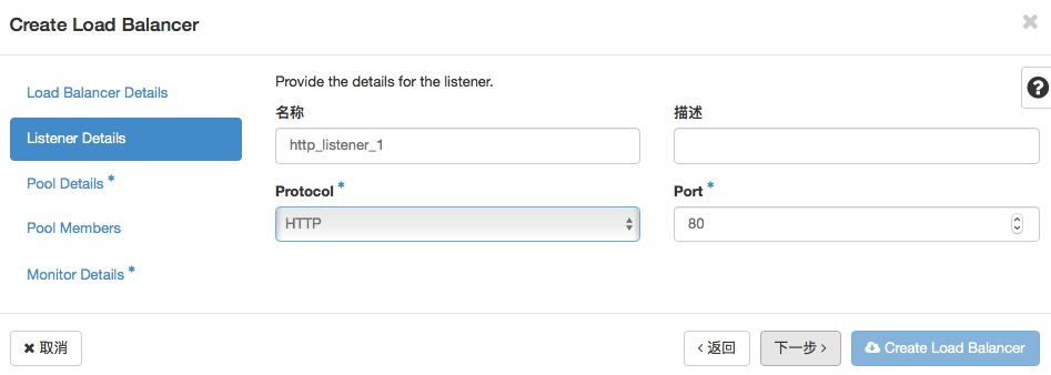 Step 3. 设定 Load Balancer 下属的 Listener,指定监听 HTTP Port: 80 访问请求。