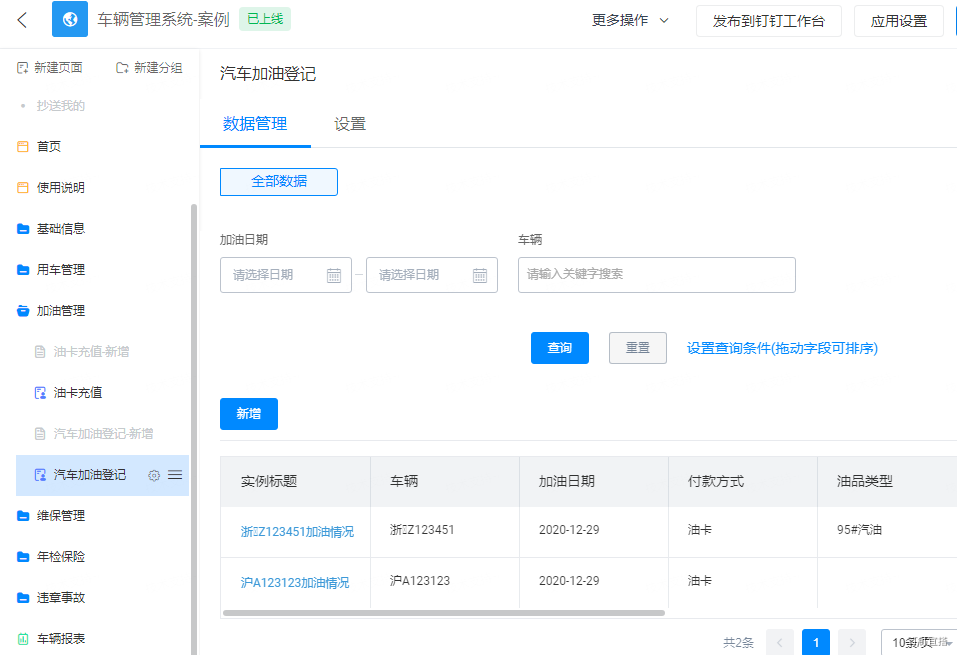 该应用大多表单只展示了数据管理页,其他表单页面都是隐藏的,可以自己自定义隐藏还是显示,路径:鼠标移到表单上,有个设置按钮,点击显示或隐藏