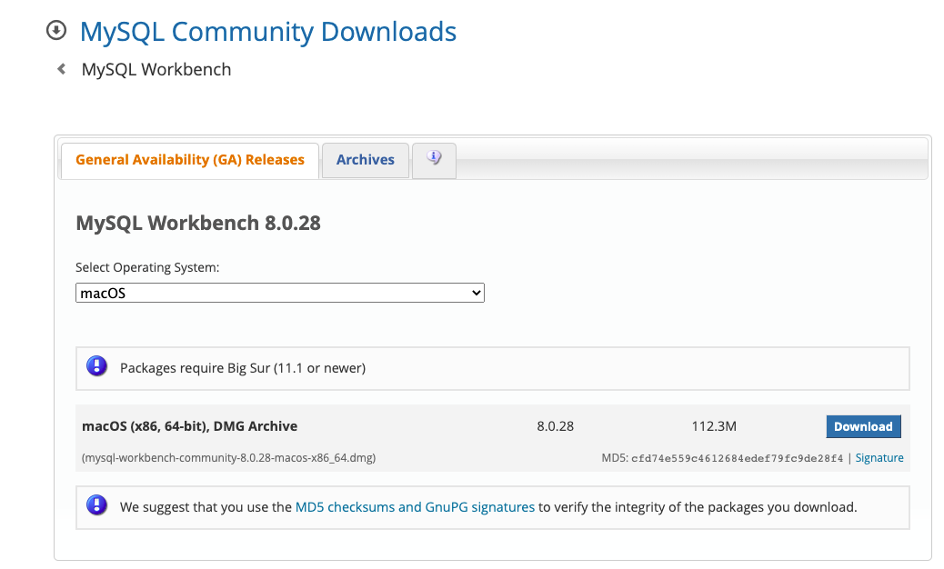 下载MySQL Workbench