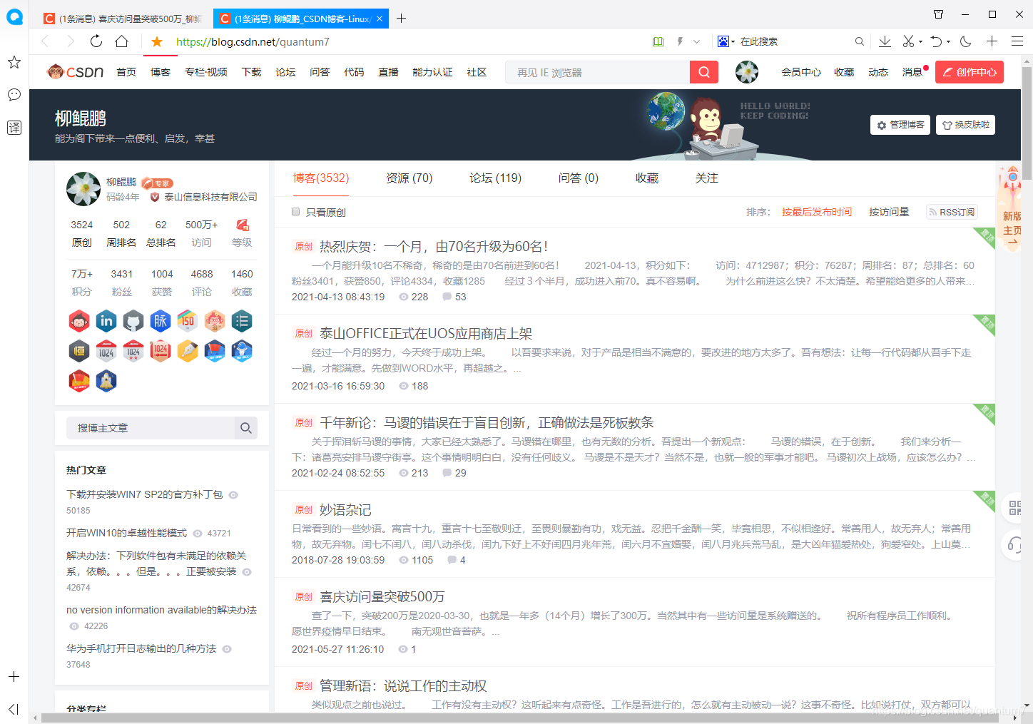 查了一下,突破200万是2020-03-30,也就是一年多(14个月)增长了300万。当然其中有一些访问量是系统赠送的。相信给很多朋友带来工作上的帮助和启发。高兴,开心,欢喜,祝福。