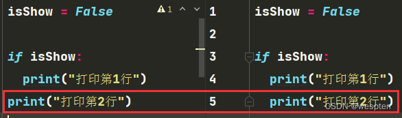 例如图中的代码,左边代码会打印第2行,而右边代码,1,2行都不打印