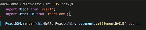 ReactDom.render渲染函数,第一个参数标签结构直接包含标签的JSX语法js+XML。React没有双引号概念,第二个参数获取一个元素
