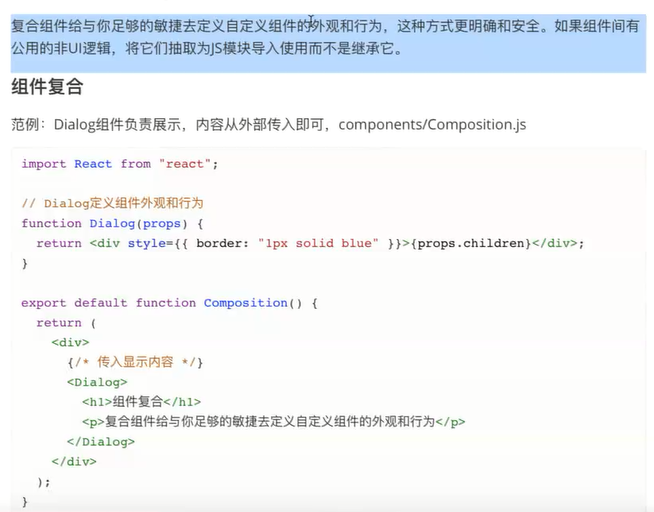 组件只赋值展示,内容外部调用的时候传入,props.children也是jsx是一个对象