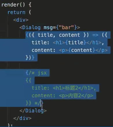 调用children函数,children就是Dialog内部的内容,传递什么children就是什么,传递对象props.children就是对象