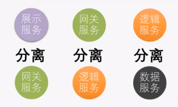 水平方向会拆分多个进程把一个进程拆分成三个进程,网关是一个进程、业务逻辑是一个进程、数据访问层与数据存储层每一层都逻辑解耦。