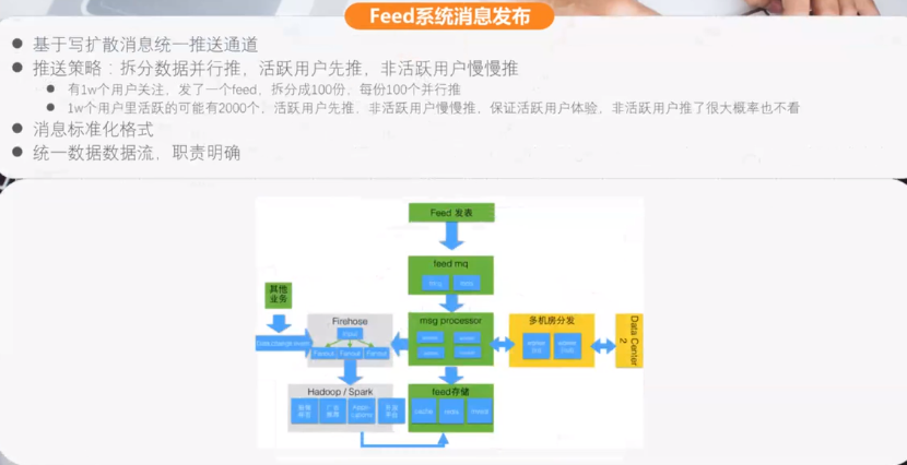 架构如何选型、设计怎么折中、线上遇到问题能不能第一时间解决(Feed系统重要的理念push和pull,push推送到粉丝,粉丝上线再去pull获取数据)