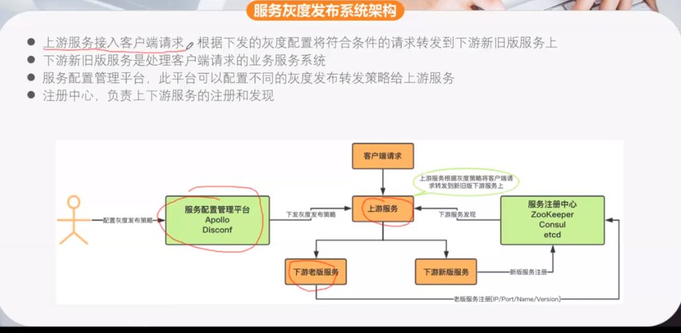 因为灰度的策略可以动态改变的放在Apollo配置中心,那些服务可以进行灰度,灰度的策略。