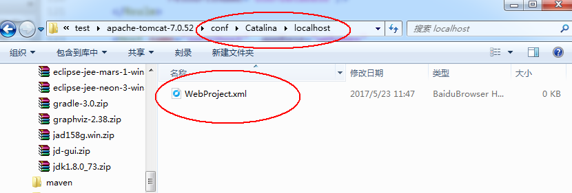①、进入到 apache-tomcat-7.0.52\conf\Catalina\localhost 目录,新建一个 项目名.xml 文件