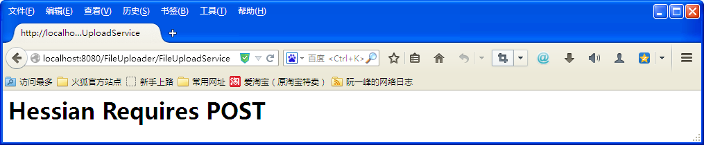 到此,服务端的编写就完成了,部署FileUploader到Tomcat服务器,启动Tomcat服务器,在浏览器地址栏输入:http://localhost:8080/FileUploader/FileUploadService,查看是否可以调用。