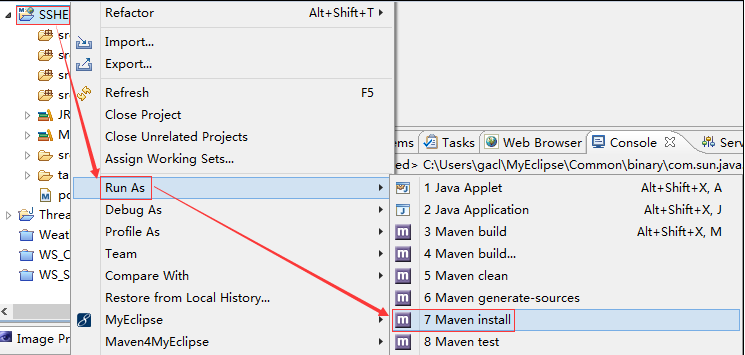 这样我们的【Struts2AnnotationMavenProject】项目才是一个标准的Maven项目,我们可以使用Maven来构建一下【Struts2AnnotationMavenProject】项目,看看能否正常构建成功,如下图所示: