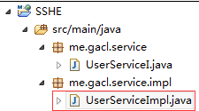 在src/main/java中创建me.gacl.dao.impl包,在包中编写 UserDaoImpl实现类,如下图所示: