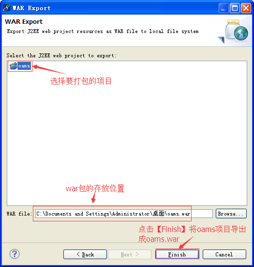 点击【Finish】,就可以将oams这个Web应用打包成oams.war了,如下图所示: