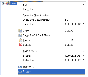 选中要打包的【oams】项目→【Export...】