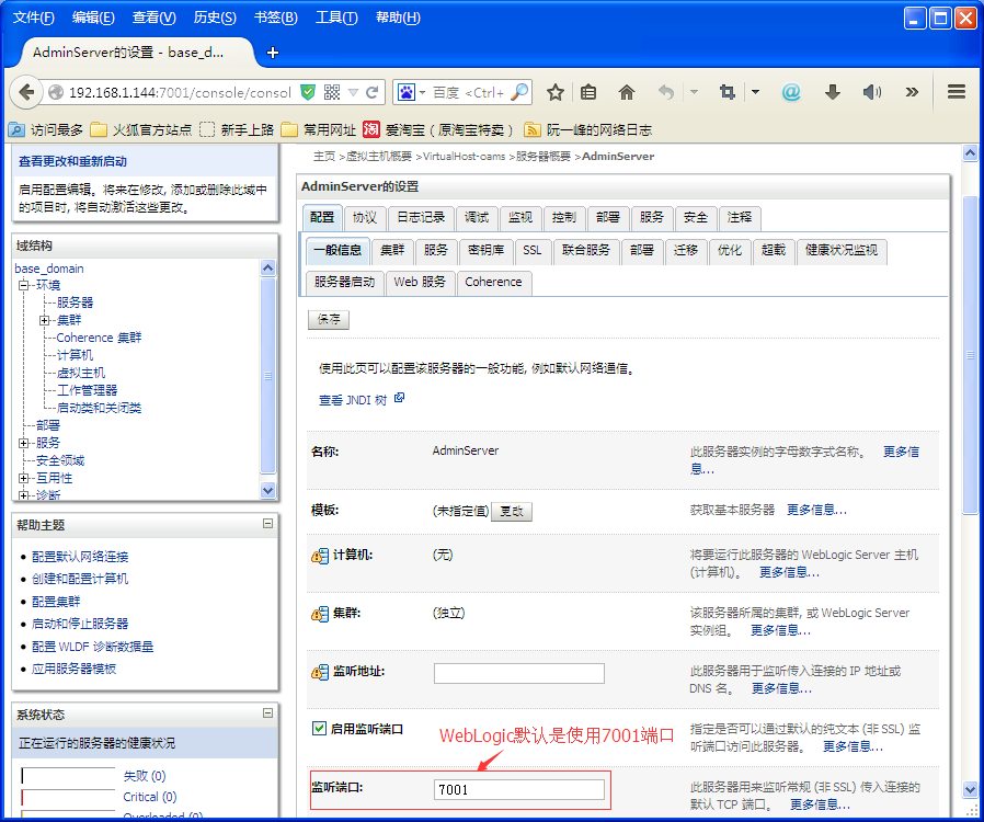 WebLogic服务器默认是使用7001端口,如下图所示: