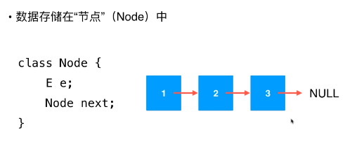 E存储真正的数据,Next是Node类型的数据,也是一个节点,是当前节点的下一个节点,使得数据整合在一起了。