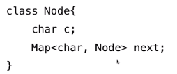 多叉树,专门为处理字符串设计的数据结构,每一个节点有26个指向下一个节点的指针。next为一个字符到新的节点的映射。