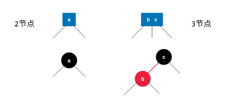 b节点是红色的,b节点与原来的父亲节点在2-3树中是并列的,所有红色节点都是向左倾斜的。