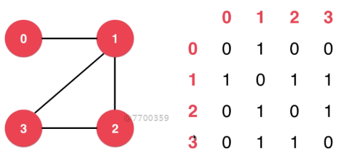 邻接矩阵适合表示稠密图,二维数组中为1对边的表示,1表示相连。