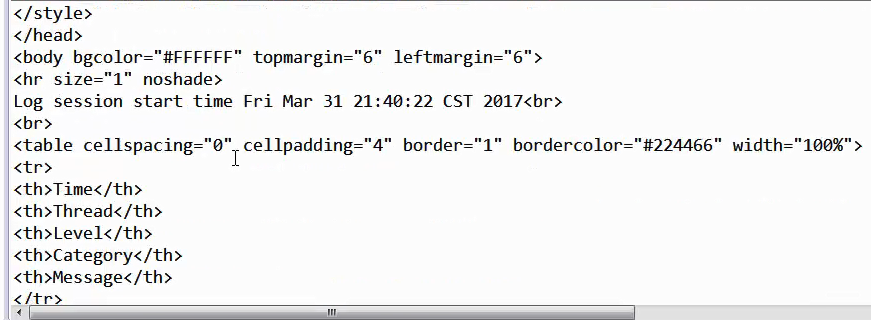 org.apache.log4j.HTMLLayout(以HTML表格形式布局),