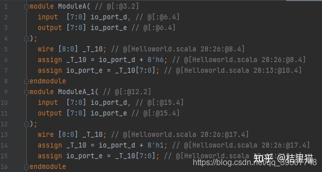 再复杂一些,变成这样。16-23行,设计一个新的module, 直接将portb加上一个常数。如上图所示。ModuleA有一个参数,接收port_width. 同时还接收Parameters类型的隐式参数p,该参数用来传递配置参数.