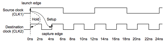 set_multicycle_path 2 -hold -from [get_clocks CLK1] -to [get_clocks CLK2]