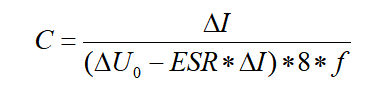 其中f=1/T,电感电流变化量 ΔI ,K的设计经验值取10%-20%,为输出电流最大值,电感要取最大值,取最大值,D取最大值。