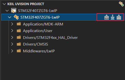 点击项目的切换按钮,可以在多个Keil Target 之间切换