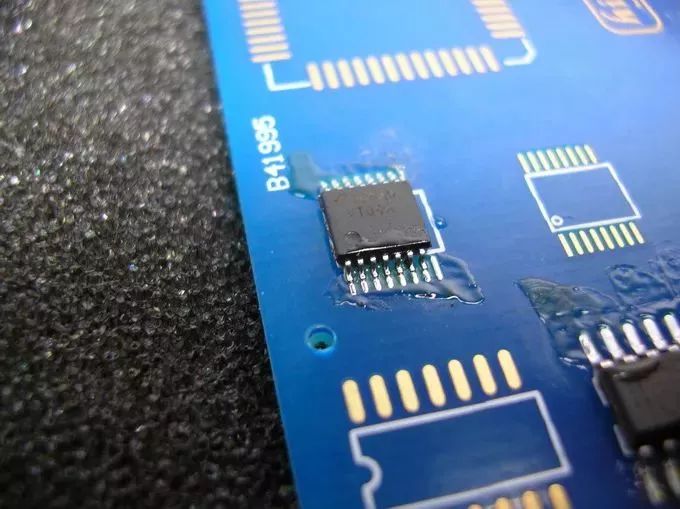 然后使用融化的焊丝随意焊接IC的数个脚来固定IC!