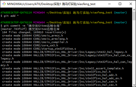 第五步:右键打开Git Bash here,输入“git add *”,然后输入“git commit -m “名称””提交版本: