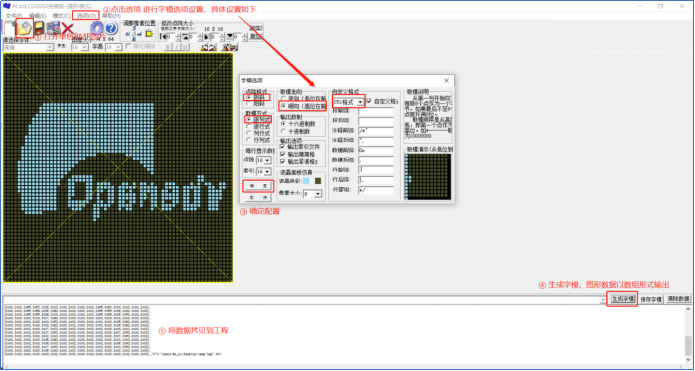 ②BMP单色图片进行取模,获取图形数据,具体操作如下: