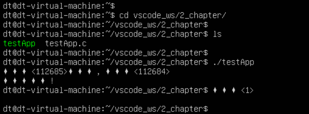 将上述程序编译成一个可执行文件testApp。 接着编写新程序,在新程序当中打印出环境变量和传参,如下所示: 示例代码 10.11.2 新程序