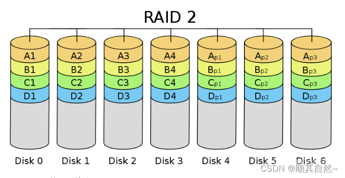但是,海明码的数据冗余开销太大,而且 RAID2 的数据输出性能受阵列中最慢磁盘驱动器的限制。再者,海明码是按位运算, RAID2 数据重建非常耗时。由于这些显著的缺陷,再加上大部分磁盘驱动器本身都具备了纠错功能,因此 RAID2 在实际中很少应用,没有形成商业产品,目前主流存储磁盘阵列均不提供 RAID2 支持。