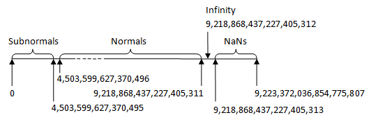 现在有很多数字!将浮点数(不是浮点值)表示为带符号的 64 位数字有助于加强格式背后的直觉: