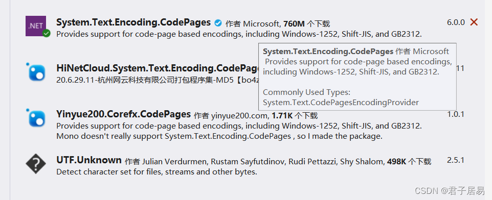 解决方案 1、在NuGet包中安装包System.Text.Encoding.CodePages