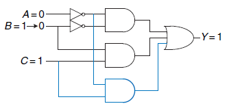 上图消去毛刺的方法是在卡诺图中增加一个新的覆盖主蕴含项边缘的圈: