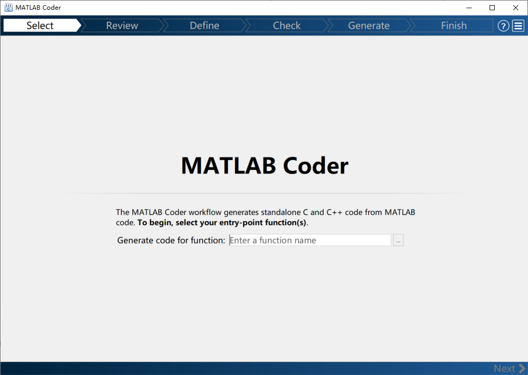 打开后,MATLAB Coder初始界面如下图所示: