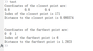 加载 euclidean_data.mat 是在调用核心算法之前执行的预处理步骤。显示结果是后处理步骤。 在 MATLAB 中运行测试脚本 test.m。输出显示 y、idx 和 distance。
